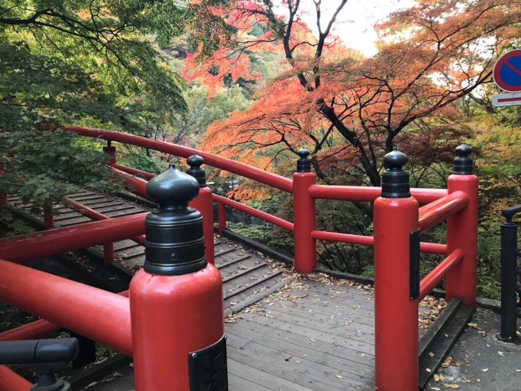 石段を登りながら射的や土産店をのぞき、伊香保神社で参拝。紅葉に染まる河鹿橋を渡り、勝月堂の湯乃花饅頭を蒸したてで頬張る。計画編で思い描いた光景が現実に。