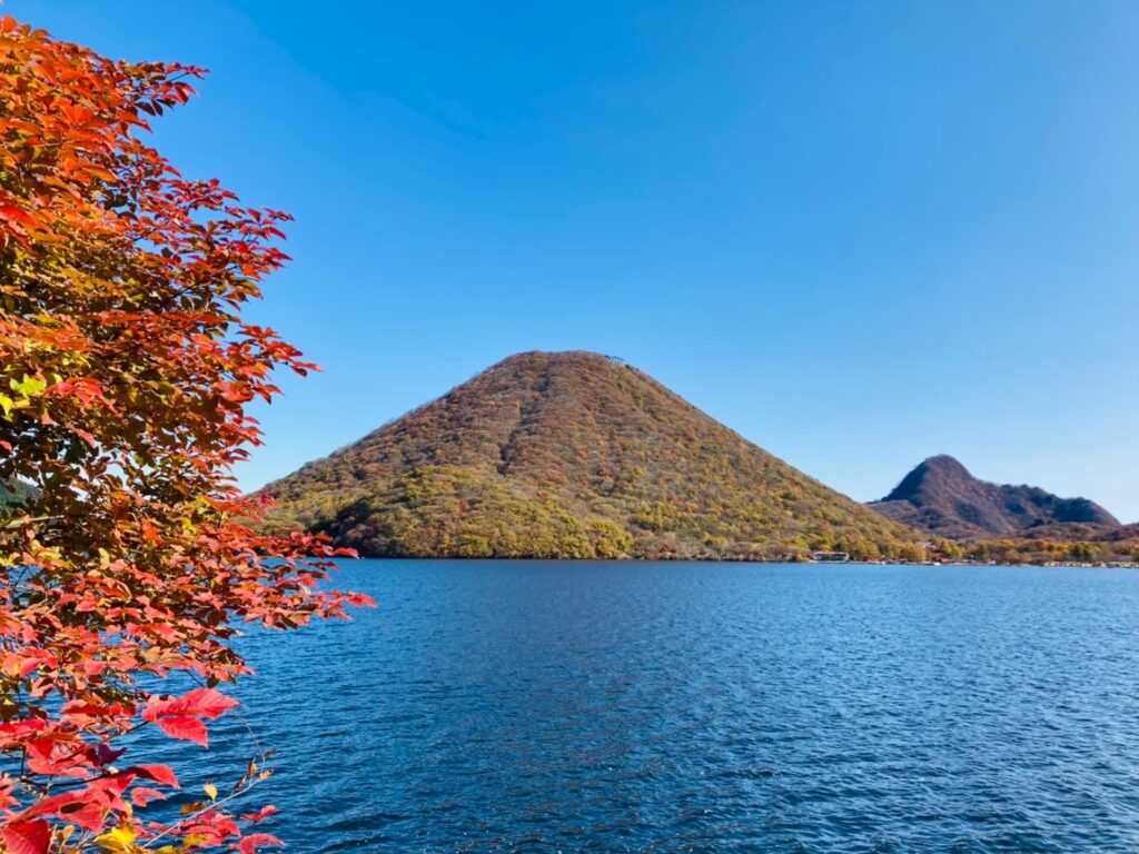榛名富士を映す湖畔の景色は圧巻。秋の澄んだ空気と紅葉が旅情を高めてくれる。