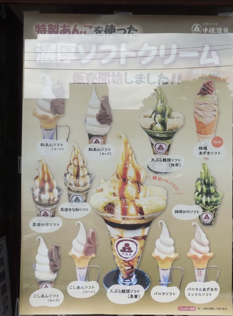 城下町を歩けば、老舗「中條饅頭」で販売されるソフトクリームが大人気。ほんのり甘く、散策途中のひと休みにぴったり。