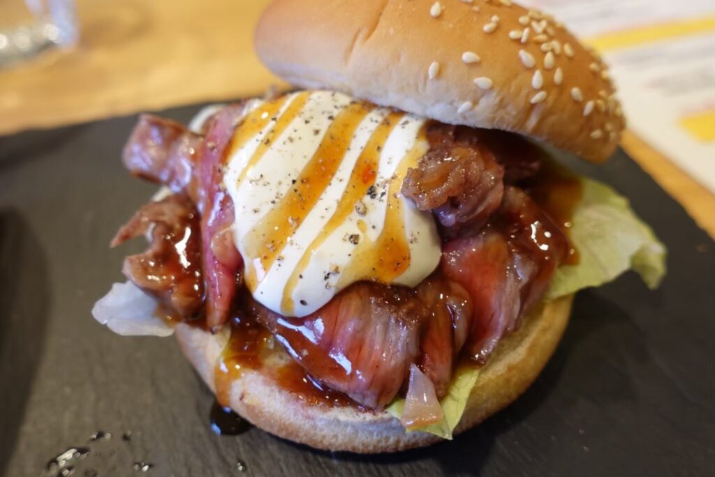 姫路の駅近で味わえる贅沢ランチ。肉の旨味をダイレクトに感じられるステーキ丼と、ジューシーな神戸牛バーガーで満腹に。