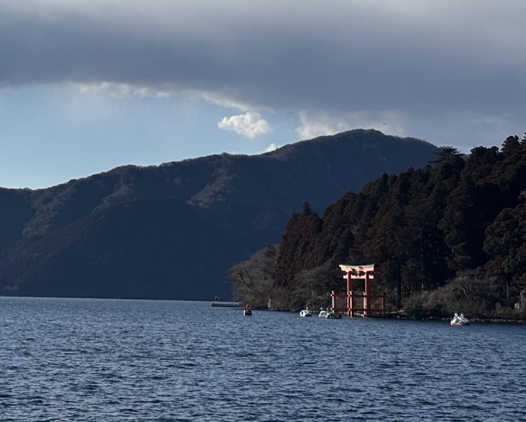 湖畔のレストランでランチ。窓からは雄大な芦ノ湖が一望でき、食後は周辺のお土産店をぶらりと散策。湖畔の空気を満喫できる贅沢な時間でした。