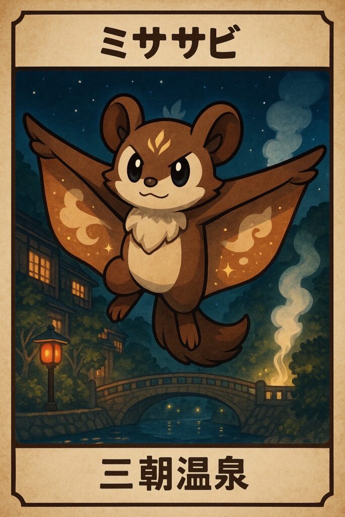 ミササビは、夜の温泉街を滑空するムササビの精霊。