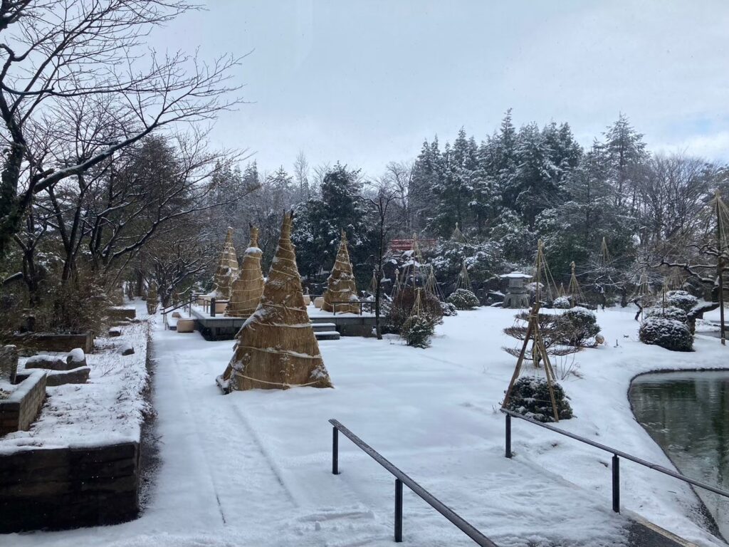 感想:雪化粧した庭園を眺めながら露天風呂に浸かると、湯面に映り込む白と翡翠色のコントラストが幻想的でした。冷たい外気と熱い湯の温度差が心地よく、肩まで湯に浸かると全身がふわりと解けていくよう。湯上がりの肌は驚くほどしっとりしていて、「美人の湯」の名を実感しました。