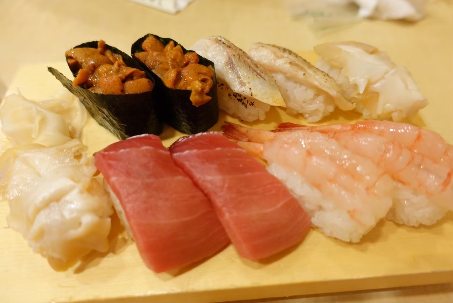 新鮮な甘エビや白身魚は、米どころ新潟のシャリと見事に調和。昼から寿司と地酒で贅沢気分に。