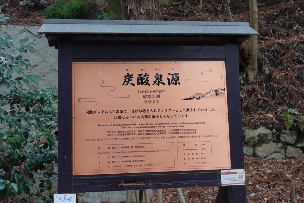 坂を抜けると炭酸泉源があり、ここから湧く水をサイダーにして飲んでいたことや炭酸せんべい誕生の由来になっていると知りました。