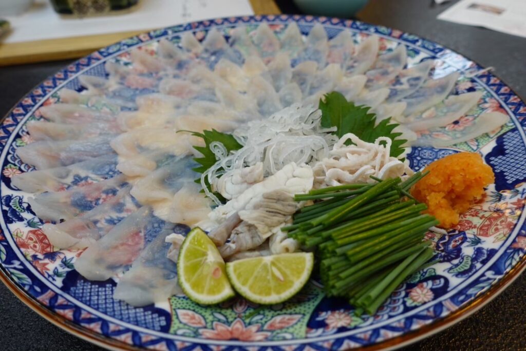 夕食に供されたのは、刺身・唐揚げ・鍋と多彩に調理された「ふぐづくし」。
