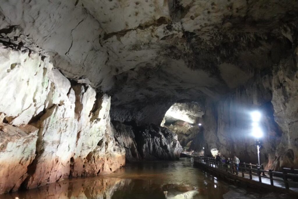 高さ15mの「百枚皿」、天井からそびえる「黄金柱」など、数万年かけて形成された自然の造形美は圧巻。