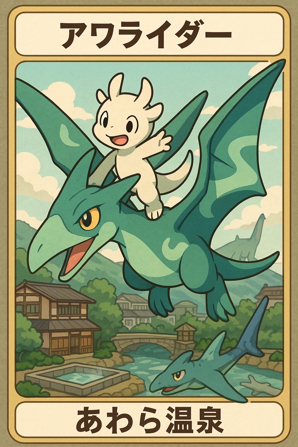 今回は芦原温泉編。北陸屈指の温泉地に伝わる“恐竜王国・福井”のイメージと、名湯の豊かな湯量をモチーフに生まれたキャラクター「アワライダー」をご紹介します。