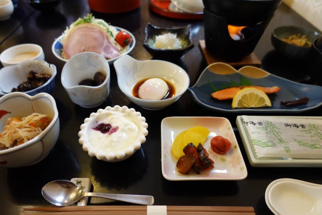 夕食の豆乳鍋をはじめ、地元食材を使った家庭的な料理が並びました。派手さはないものの、一品一品に「体をいたわる優しさ」が込められているようでした。朝食もバランスの良いメニューになっており、すがすがしい朝にぴったりの食事でした。