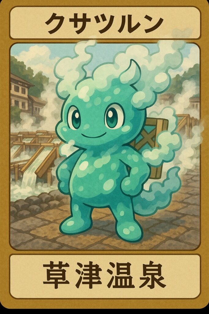 今回は草津温泉編。日本三名泉のひとつであり、強酸性の湯と湯畑の風景をモチーフに生まれたキャラクター「クサツルン」をご紹介します。
