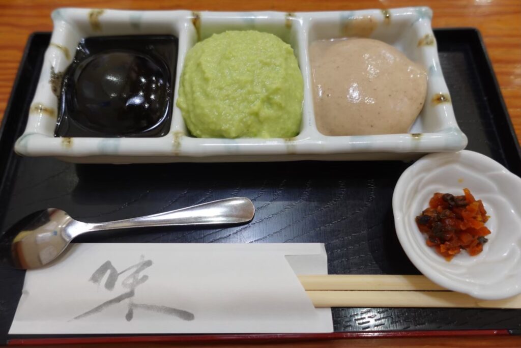 牛タンを食べ終えた後は、ずんだ餅を求めて村上屋へ。三種(ごま、ずんだ、くるみ)のお餅が味わえるセットがあり、これが大当たり!店先には行列ができるほどの人気店ですが、並ぶ価値ありです!